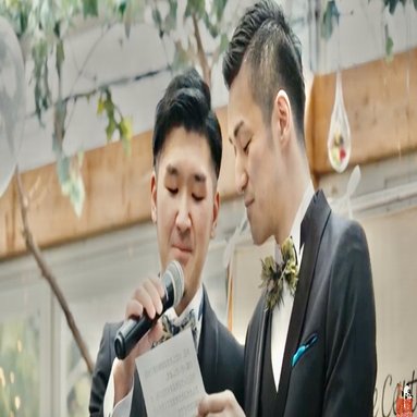 The grooms in this wedding reception video are apparently called Masataro and Pantaro.