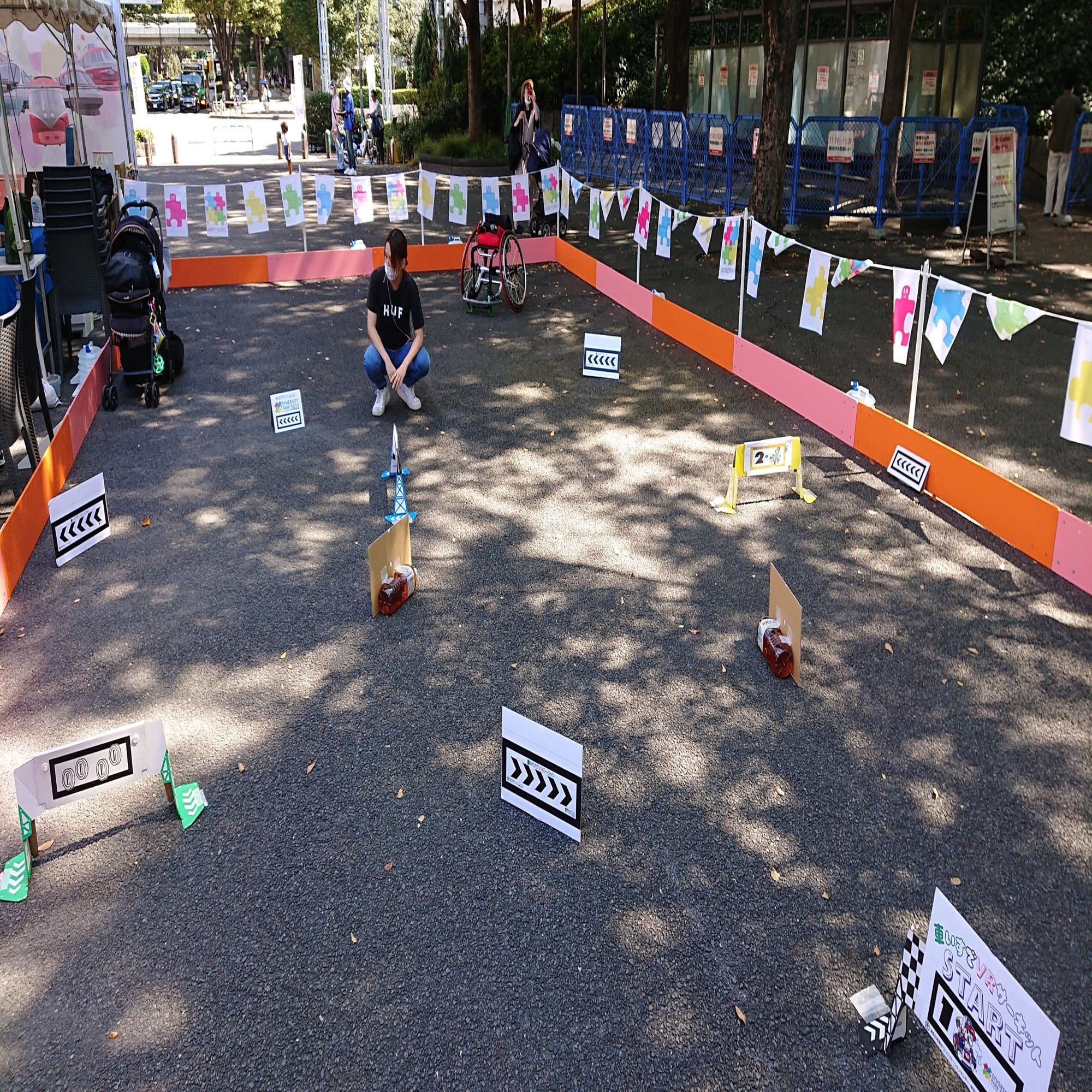 Let’s control a radio-controlled car with a wheelchair and run it on a real course! It’s something that no child can’t have fun with.