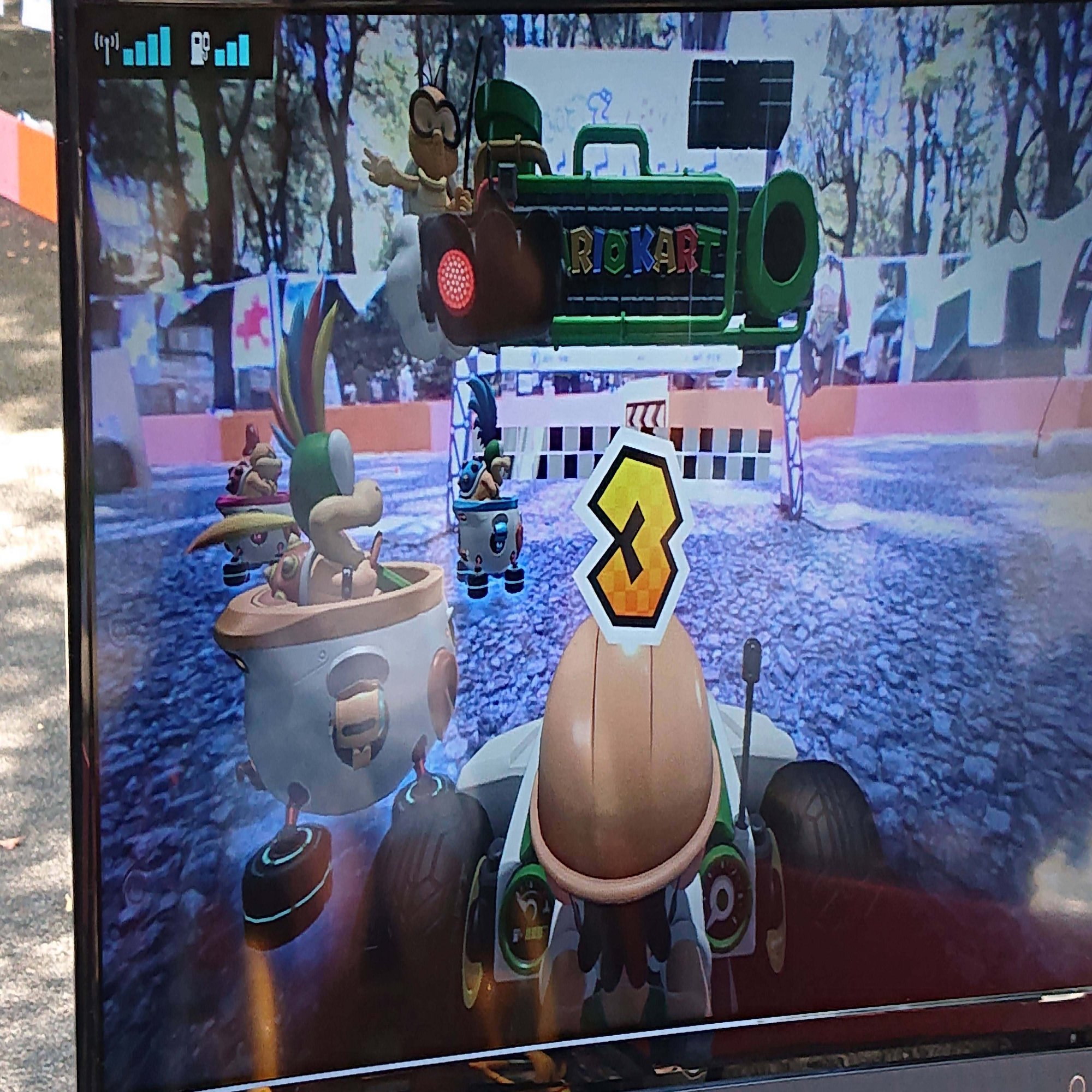There is a game on a certain game console that uses AR technology to make the room look like a course and lets you run a radio-controlled car with a camera, and this is an application of that.