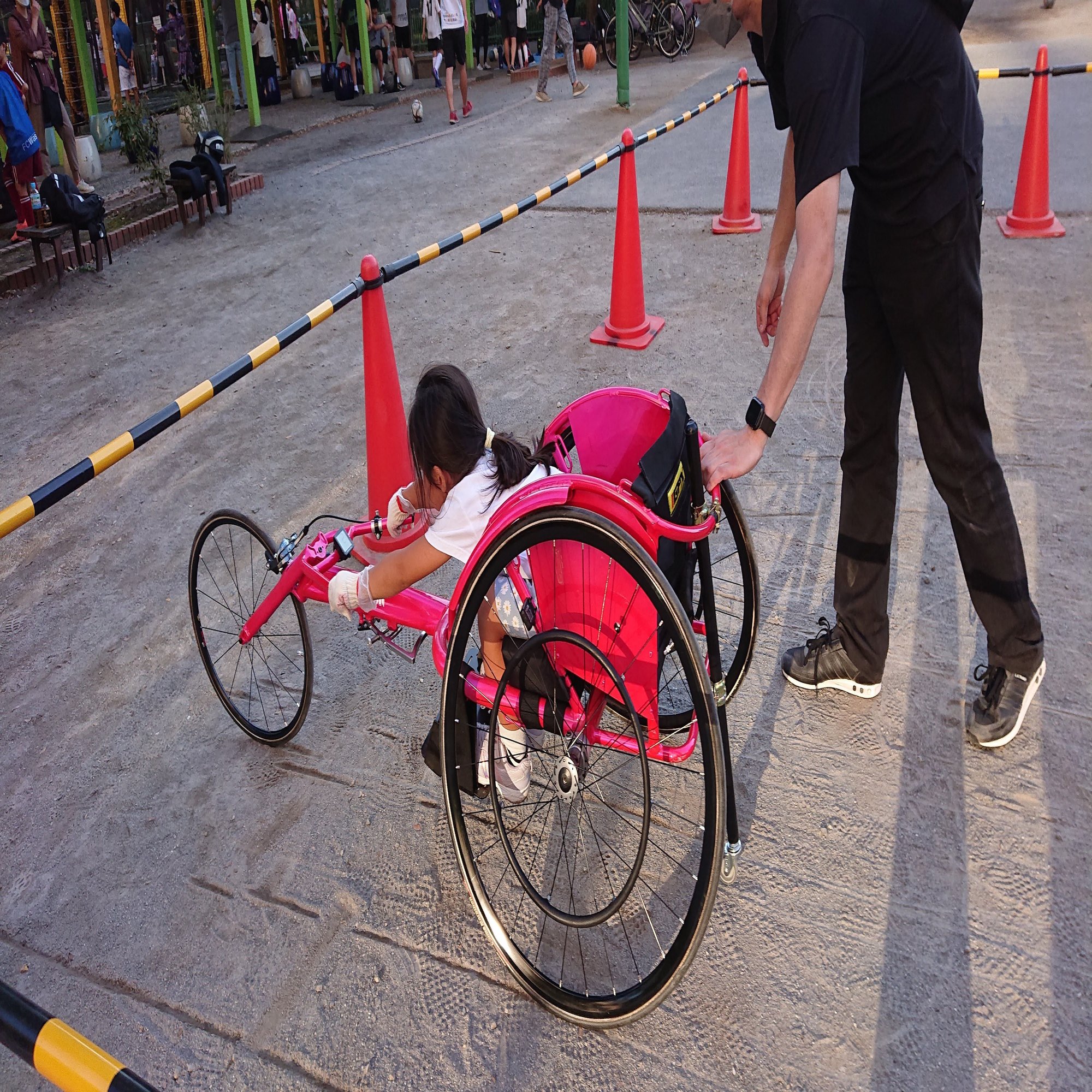 Because participants are allowed to control their wheelchairs with both hands, there were many elementary school students participating.