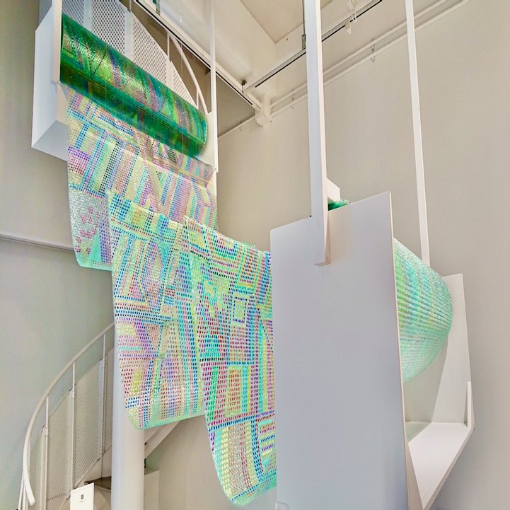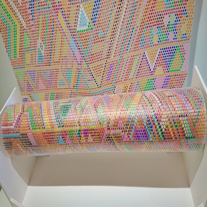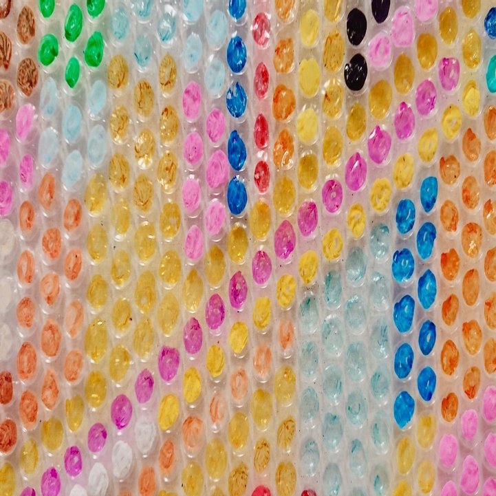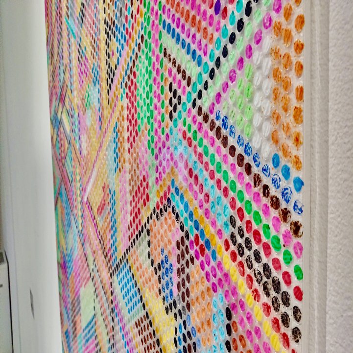 The work was made up of hundreds of bubble wrap pieces that had been painted over one by one, forming a pointillism painting.