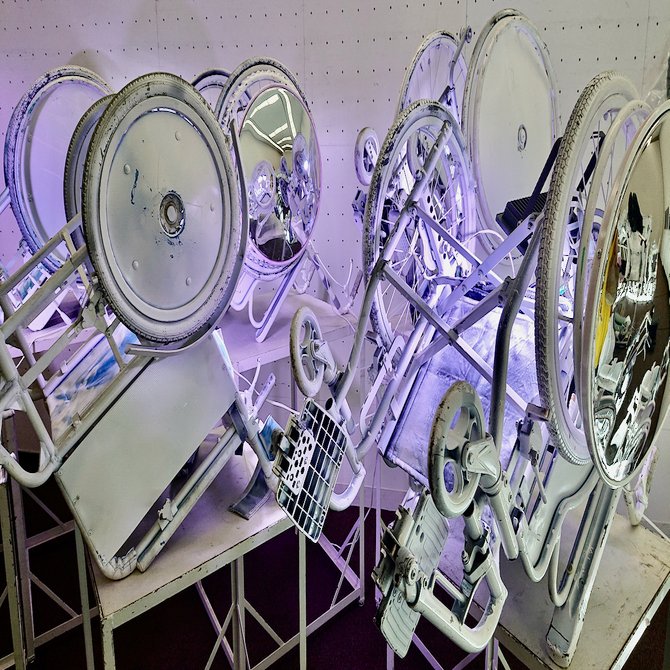 More than 60 wheelchairs were painted white and lined up in a cyber-like style. I didn’t have any other impressions than, “More than 60 wheelchairs painted white and lined up in a cyber-like style .” The explanation said, “The wheelchairs raise questions about diverse perceptions, bodily sensations, and communication with different others .” All I understood from reading the explanation was that I was unlikely to catch the question. My antenna was pointing in the wrong direction. Or rather, I was forced to face the reality that there was a very high possibility that the wheelchairs were hopelessly low-performance in the first place. That was also a learning experience.