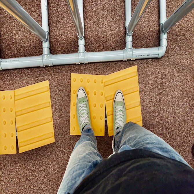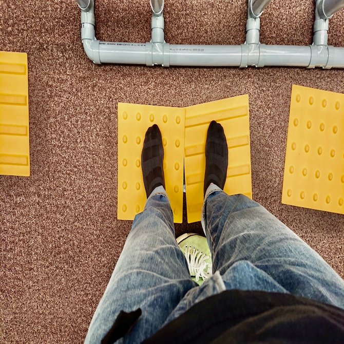 Why was I so surprised? Because there were braille blocks right under my feet, which I had never expected. Of course that was part of it. But there was more to my surprise than that. It was because I realized that I had completely missed the point of understanding that braille blocks are something to touch. Braille blocks are something to touch. Some people touch them with their feet, or with a white cane. Of course, there are also people who look closely at them. I felt like I had rediscovered not only their existence, but also their significance.