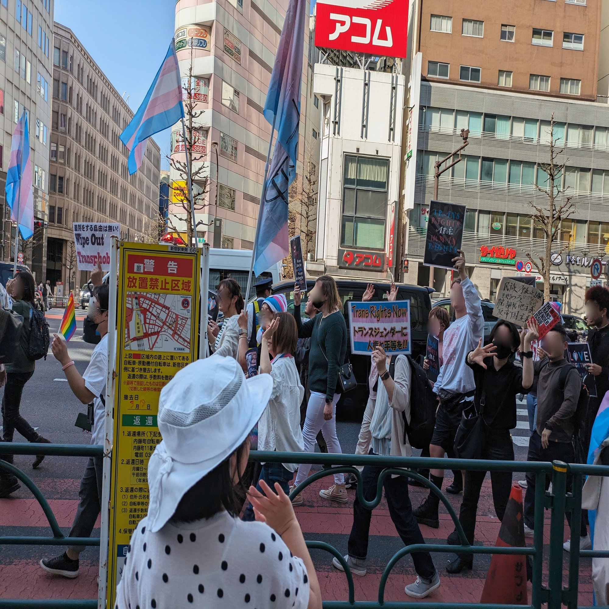 My daughter and I were waiting for the Trans March parade to arrive in front of JR Shinjuku Station in Tokyo. Its official name is “Tokyo Trans March 2023.” It is an event calling for transgender rights and anti-discrimination, and we were standing by to cheer on the parade.