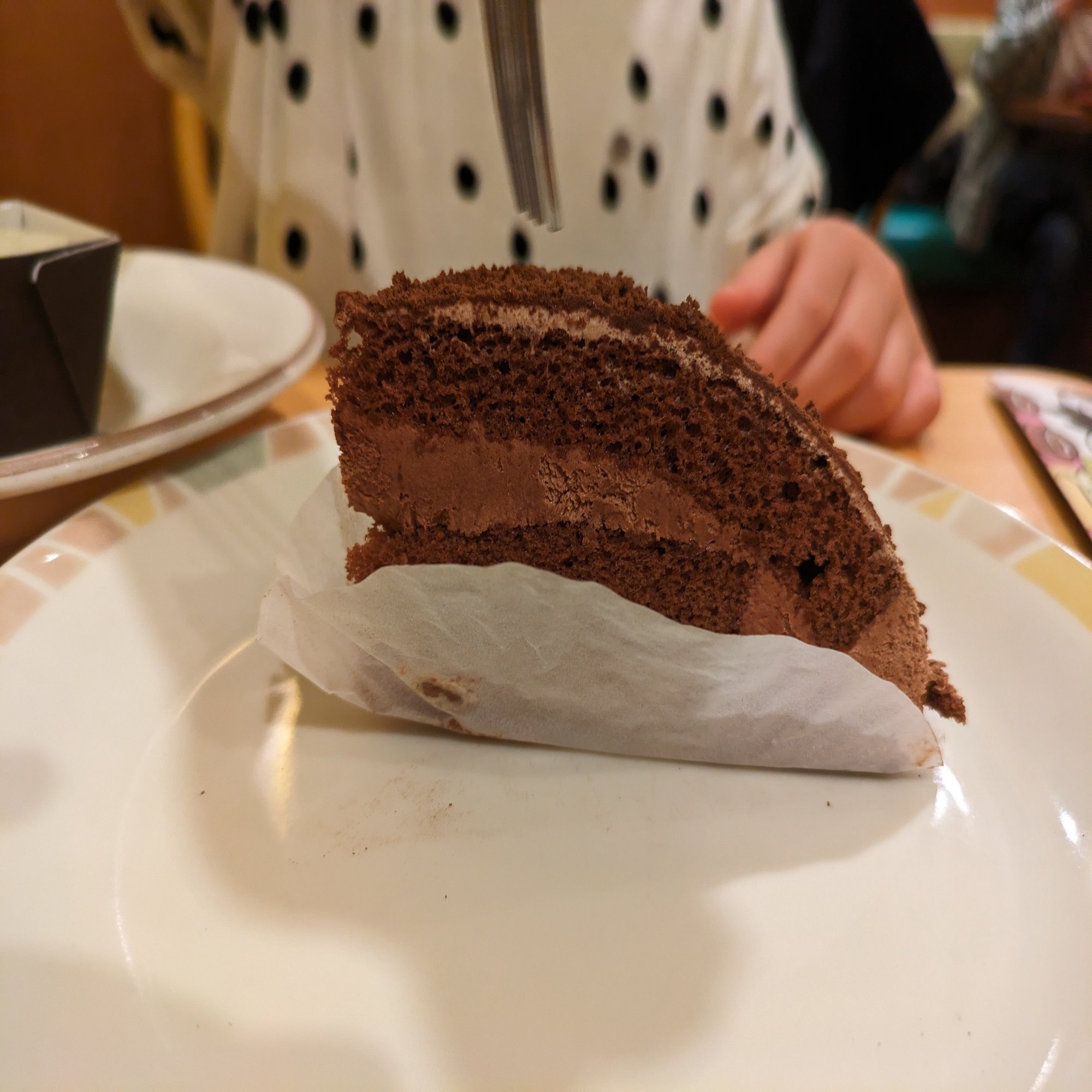 The chocolate cake that I gratefully received had an exquisite balance of bitterness and sweetness.