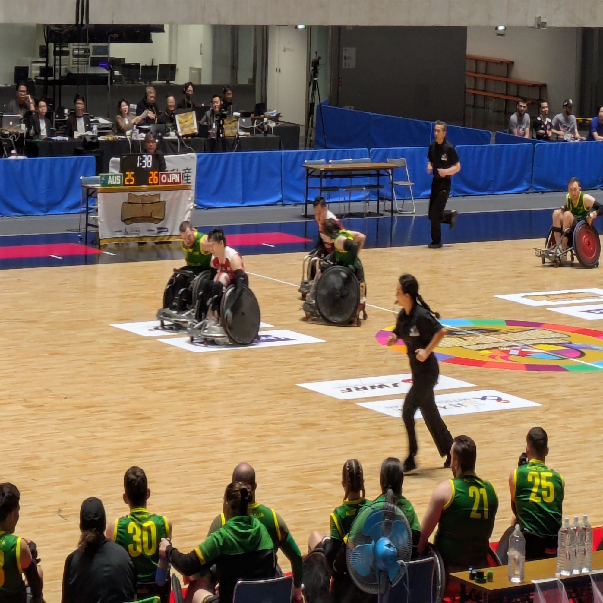 We watched the Japan vs. Australia match on the second day of the schedule. Needless to say, Australia is one of the strongest rugby nations. That doesn’t change when it comes to wheelchair rugby. They have the three qualities of being big, fast, and skilled.