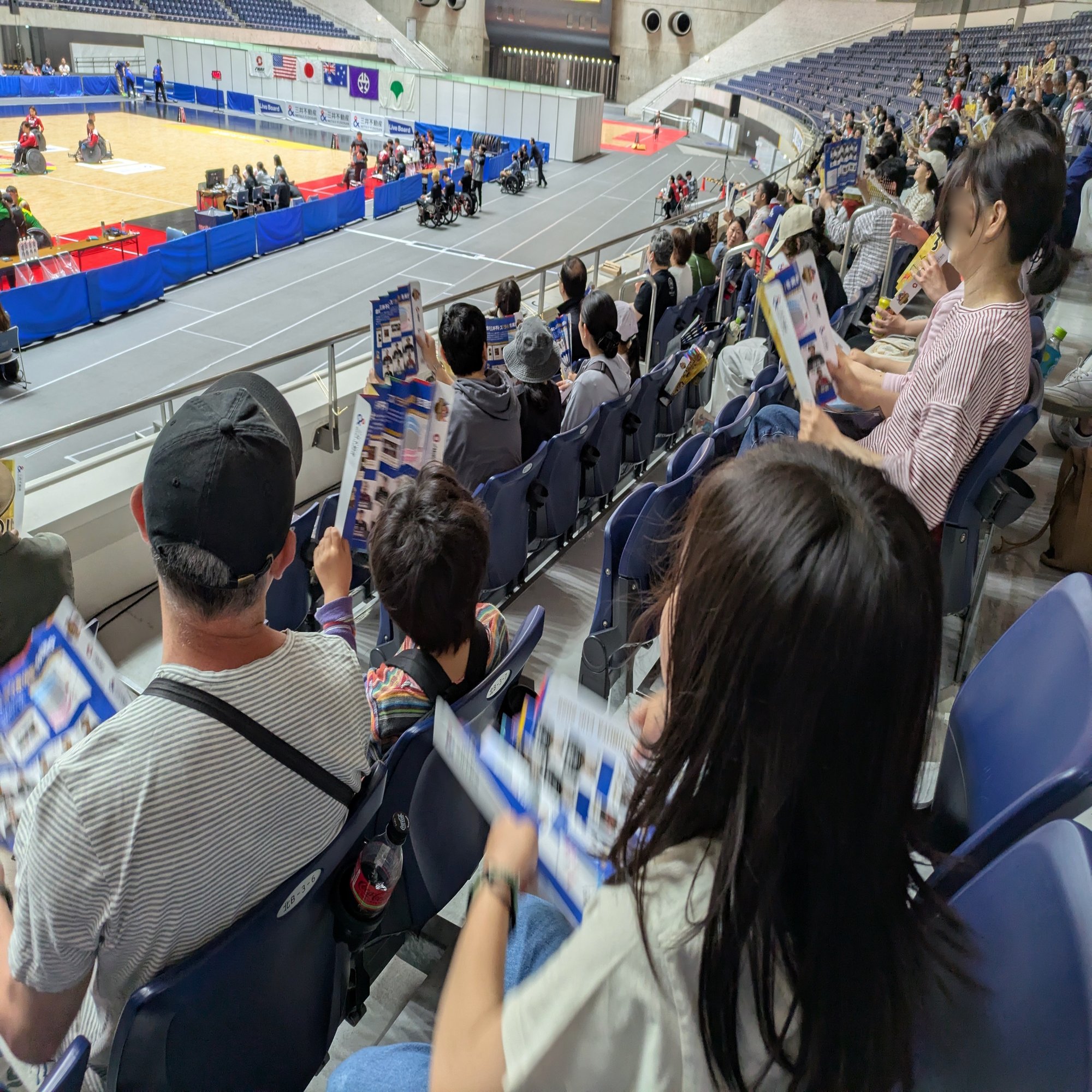 As soon as we entered the venue, my daughter saw female athletes in action. She was surprised, saying, “There are women!” Sorry. Rugby is not only a sport for gentlemen, but also for ladies. Wheelchair rugby in particular is mixed. It’s not just rugby for wheelchairs. It seems that my daughter’s common sense was shaken by the sight of men and women fighting together.